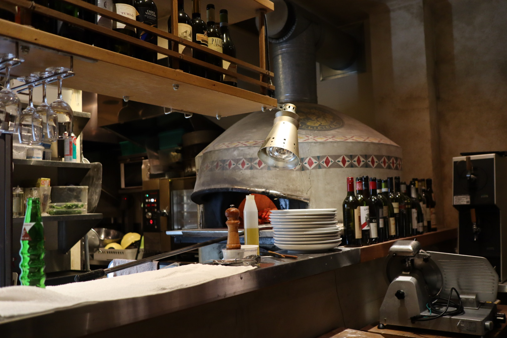 ビル街にあるとは思えない広々とした店内で、テラス席も完備。石窯で焼き上げる本格ピッツァも人気です!