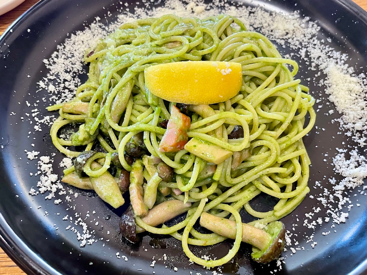 レモンの爽やかさが際立ち、蒸し暑い日でも美味しく食べられる一品です。もちもちの生パスタとの相性も抜群で、最後まで飽きることなく完食できますよ◎