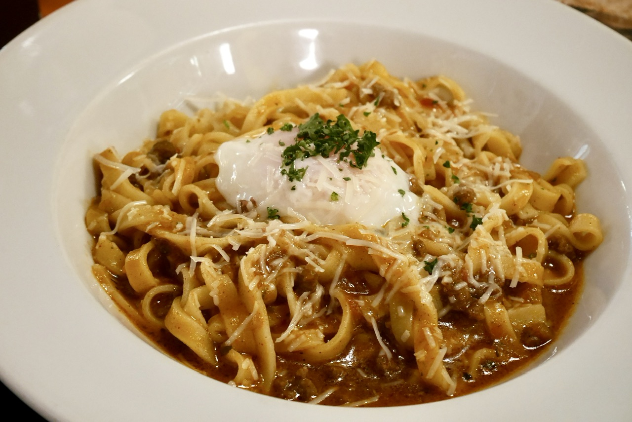 ●ボロニア風ミートソースフェットチーネ温泉卵添え/コース 1,960円(税込)