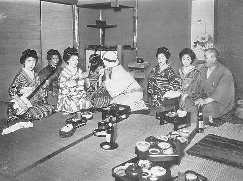座敷にいた芸者たちは、乱痴気騒ぎにたまりかねて皆逃げ出しました。