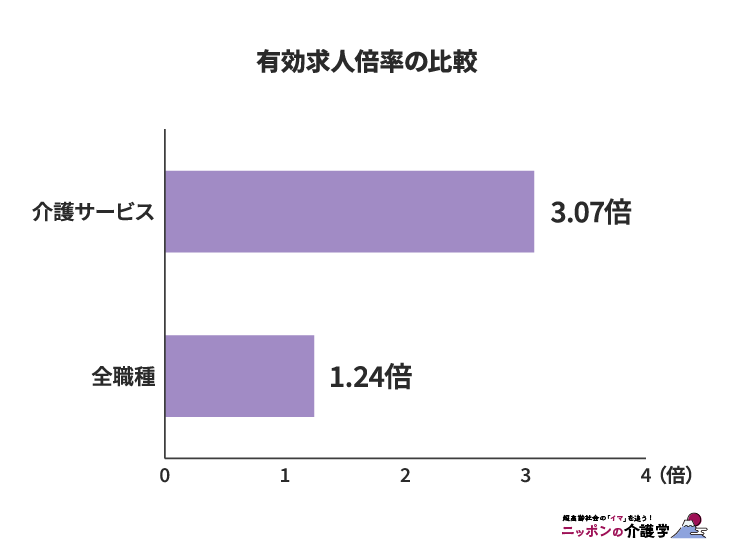 これは、介護業界全体で慢性的な人手不足の状態が続いていることを示しており、求職者にとっては非常に有利な市場であると言えます。