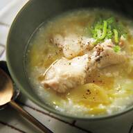 5: 器にごはん、鶏肉をのせて粗挽き黒こしょう、ごま油、小口ねぎをのせて完成です。