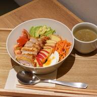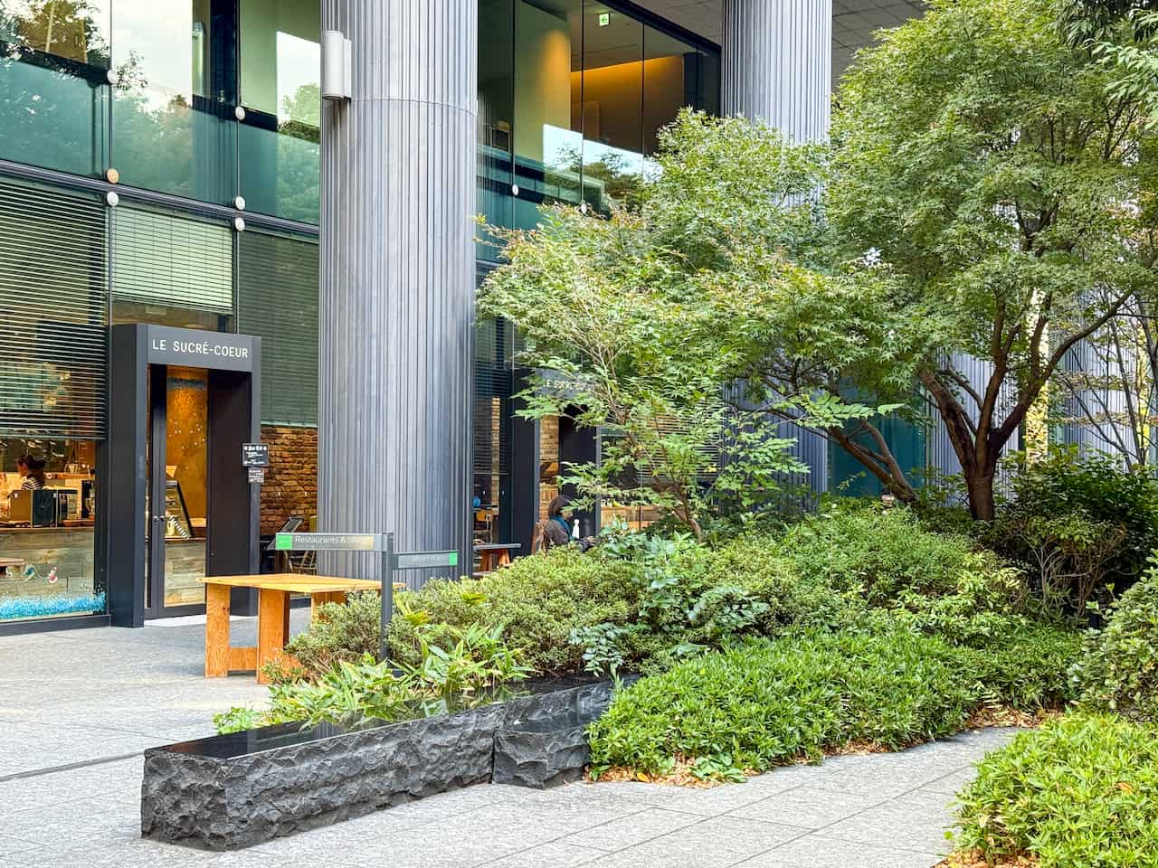 京阪中之島線「大江橋駅」から徒歩約2分、オフィス街の中に、まるで小さな森に寄り添うようにベーカリーカフェが静かに姿を現します。全面ガラス張りの店内にはやわらかな光が差し込み、目の前には緑豊かな景色が広がります。都会にいることを忘れて思わず深呼吸したくなる開放的な空間です。