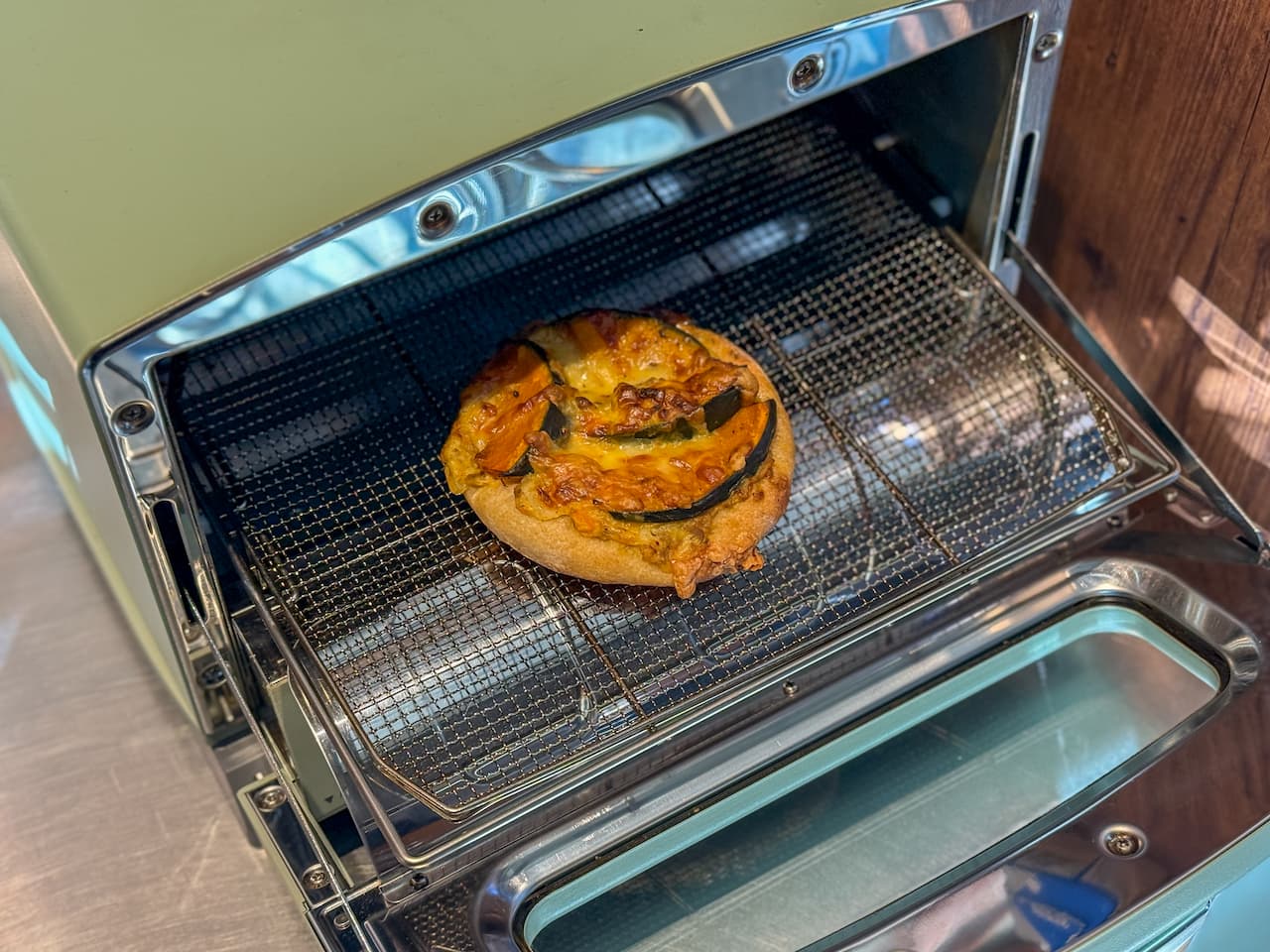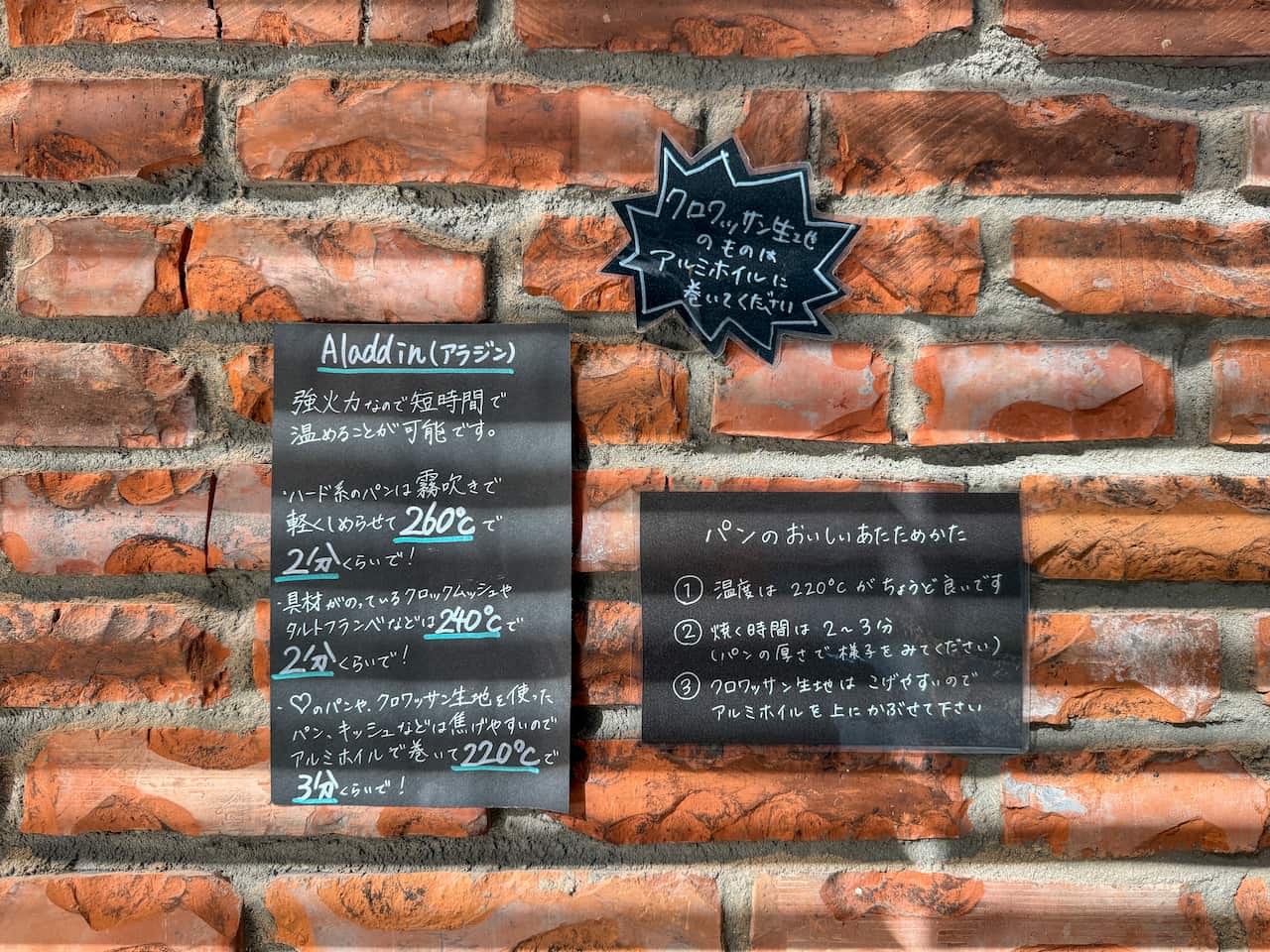 イートインスペースには温め用のトースターも完備。それぞれのパンに合う最適な温めかたが紹介されているのもうれしいポイントです。