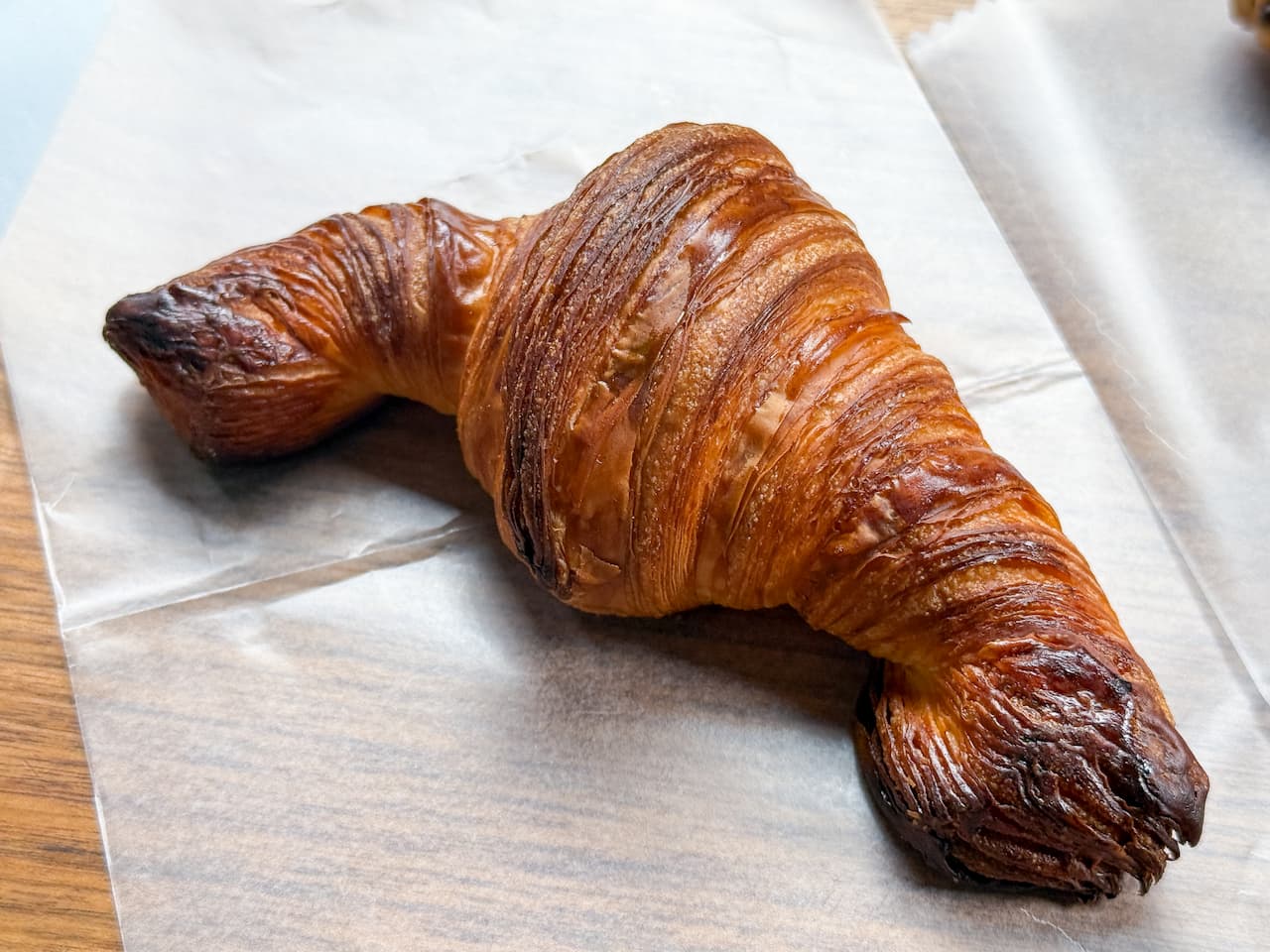 まずは定番の「クロワッサン」から。ひと口かじると“サクッ”という軽やかな音が響き、バターの香りがふわっと広がります。パリパリ&サクサクの層が心地よく、思わず笑顔になるおいしさ。ぜひ音と食感を楽しんで。