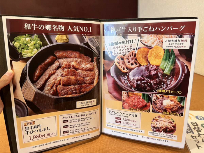 肉汁たっぷりでふっくら焼き上げた「神戸牛入りハンバーグ」、黒毛和牛の旨みを存分に味わえる贅沢な「すき焼き」、三田ポークを使った炒め物など、どれもお肉好きにはたまらない一品ばかりです。
