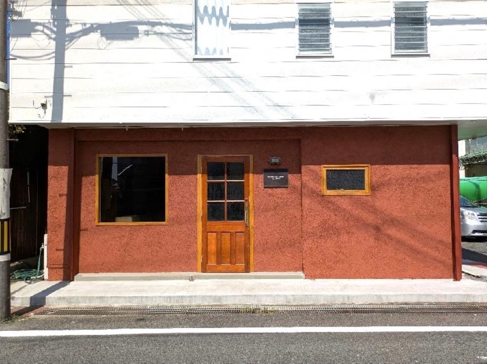 目を引くベンガラ色の外壁と、異国で使われていた扉。