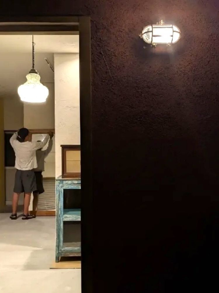 2025年の暑い暑い夏に「tane.」の改装は始まりました。店主の宮井綾子さんを中心に、クロスを剥がしたり、珪藻土を練って壁を塗ったり。前店舗で看板を照らしていた思い出のマリンランプは、新店舗のいちばん多く時間を過ごすであろう場所に取り付けました。