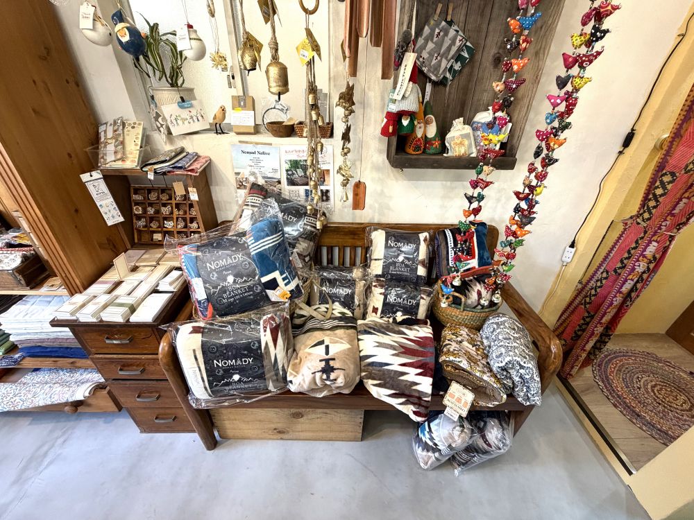 アジアン雑貨やブロックプリントが好きな店主の綾子さん。新店舗ももちろん、異国の匂いが漂うこだわりのオシャレな空間になりました。