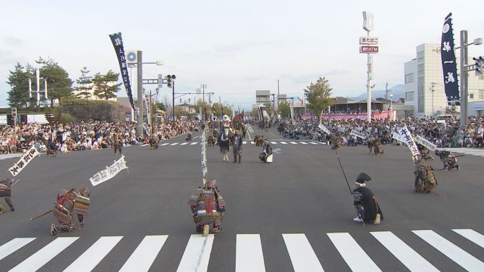 第100回謙信公祭の入込みが27日(水)に発表されました。謙信公祭協賛会によりますと、今年は俳優の松平健さんが謙信公役を務めて注目を集め、入込みは去年のおよそ2倍の9万6600人(昨年比+4万8400人)でした。