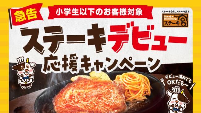 10月18日から11月3日までの期間中、金沢市長田の「ステーキ宮 金沢中央店」にて小学生以下のお客様を対象にした「ステーキデビュー応援キャンペーン」を開催!