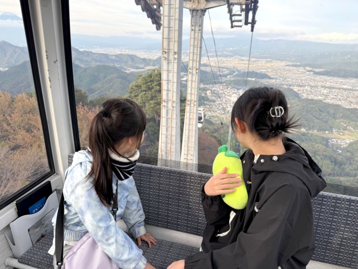 そして宿が近付いて来た頃、窓越しにロープウェイが見えたのです。ロープウェイを見た娘と姪っ子(両方とも小学生)は「乗りたい! 乗りたい!」とテンション爆上がり。その施設こそ『伊豆パノラマパーク』でした。