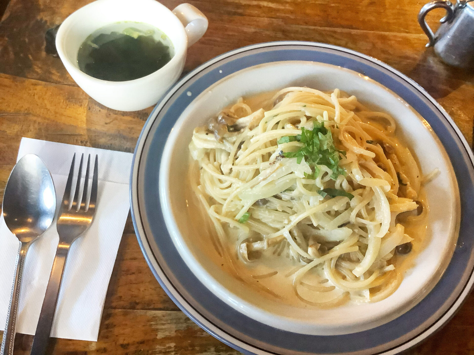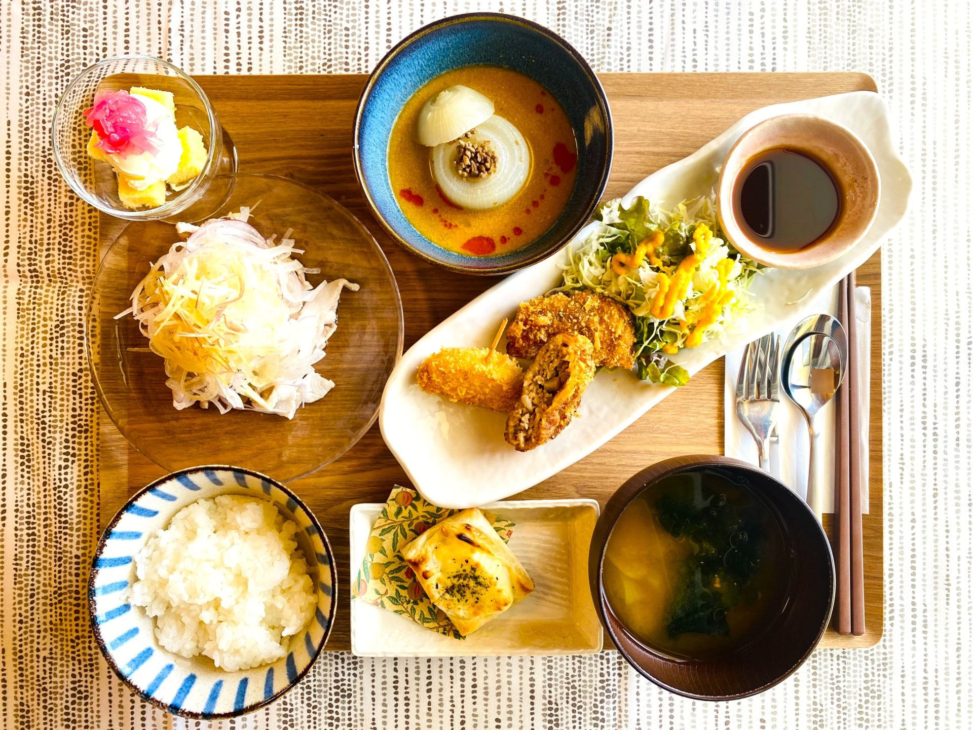 明太子と山芋のパスタや冷製スープ、かぼちゃプリンなど、どの料理も丁寧に作られていて味わい深い一皿ばかり。ディナーやテイクアウトにも対応しています。