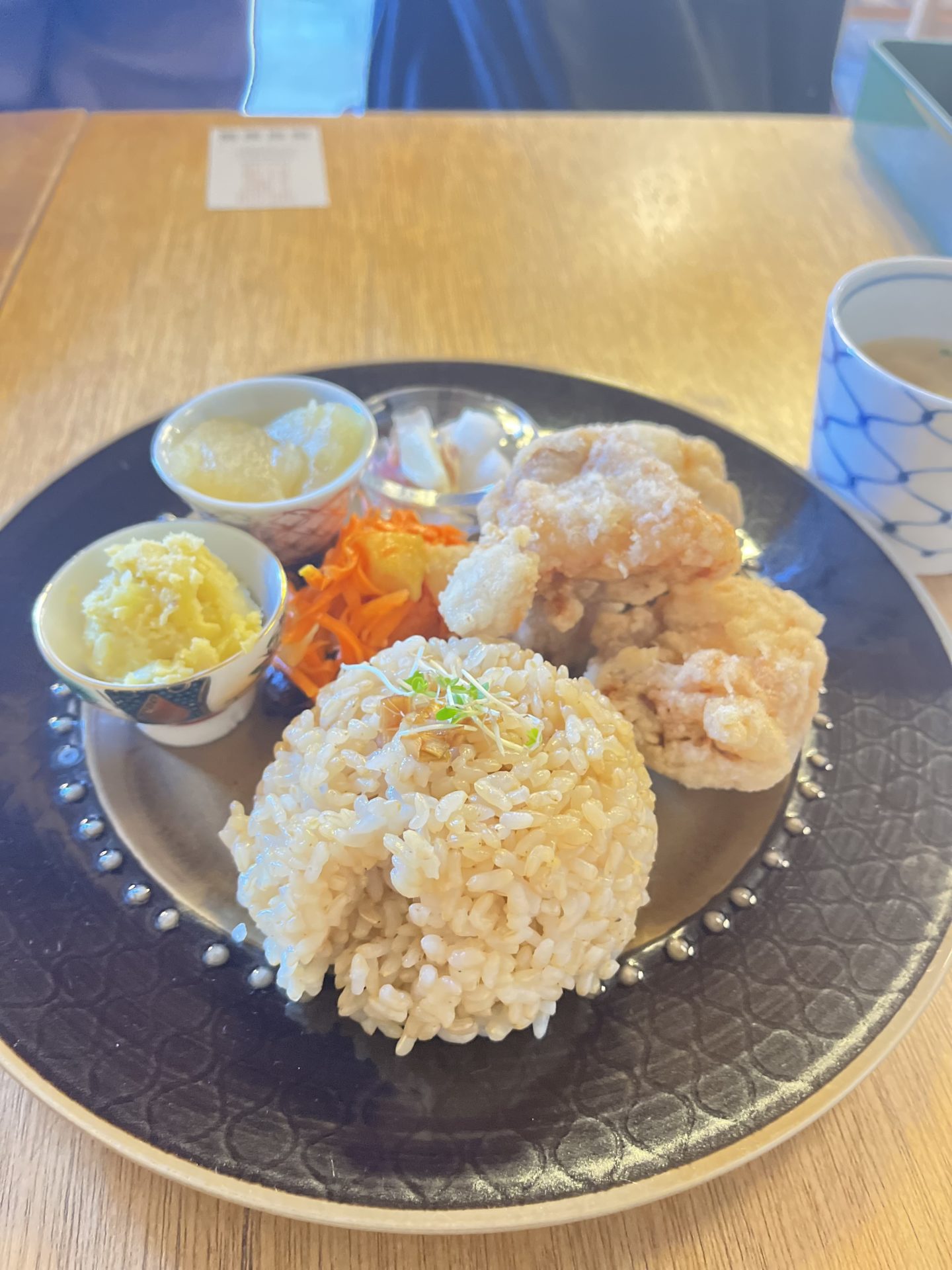 人気メニューの梅酢唐揚げはサクサクでさっぱり!地元食材の味わいが楽しめます。