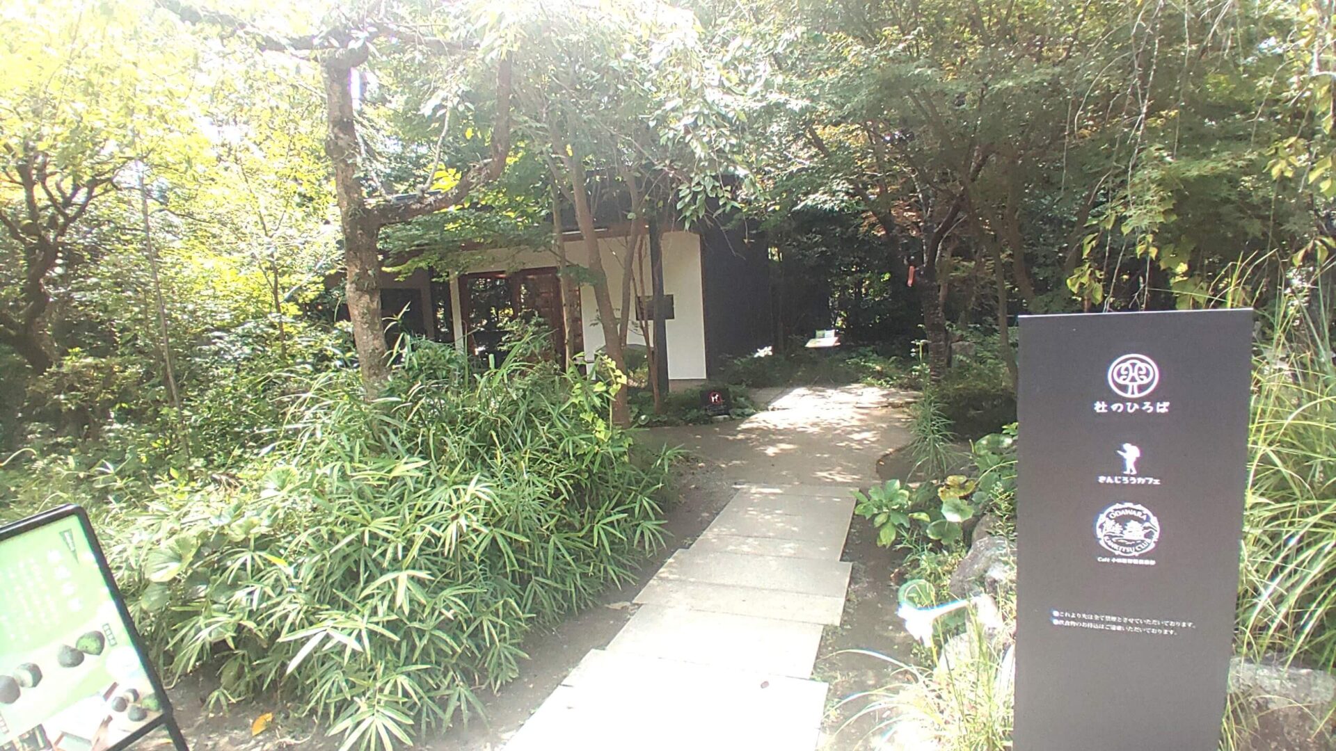 小田原駅から徒歩約10分、緑に包まれた幻想的な雰囲気の報徳二宮神社。神社内にある「杜のひろば」に静かに佇むのが、「きんじろうカフェ」です。