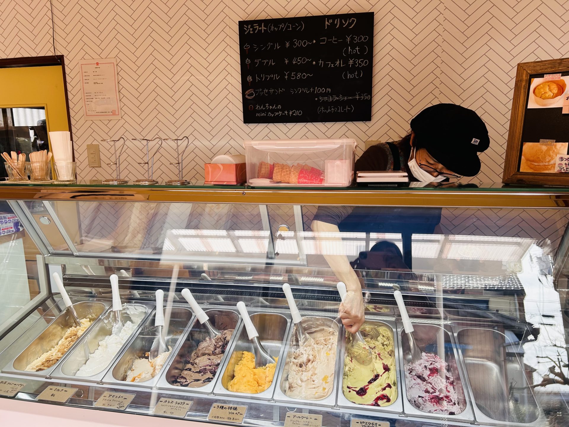 店内は温もりのある手作り空間。季節の素材を使ったフレーバーが揃い、人気のピスタチオフランボワーズや紅玉りんごパイなど、どれも素材の風味が生きています。