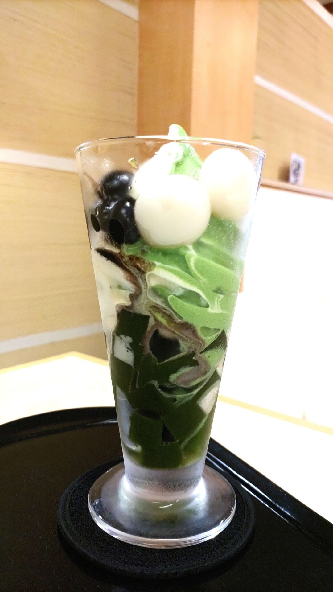 看板メニューの「新涼」は抹茶ゼリーに選べるソフトクリームがのった贅沢な和パフェ。もっちりとした白玉や黒豆とともに、甘さと抹茶のほろ苦さが絶妙に調和し、和スイーツの極みを味わえます。