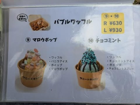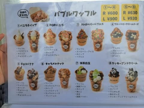 甘い系から爽やか系、フルーツ使用や和の味などバラエティ豊かです。何より見た目がめっちゃ可愛い!バブルワッフルは内容と大きさにより値段が違います。 ちなみにシンプルなプレーンワッフル(フレーバー8種類)もありますよ。