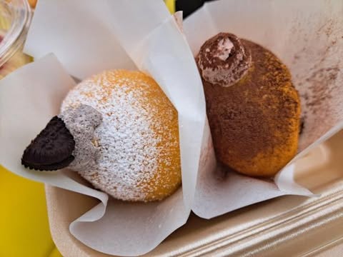 生ドーナツ!味は現在7種類(各400円)生クリームチョコレートカスタードオレオクリームプレーンシナモンあんバターとにかく作るのに時間がかかることから、小さなお子さんの子育て中の店主が毎日作ることは難しく、平日18個限定のゲリラ販売になったそうです。 お店が17時閉店で、今まではだいたい16時頃インスタグラムのストーリーズで販売開始の投稿をするらしいのですが、早い時は10分で完売。 閉店1時間前に発信してもすぐ完売になるのが凄いですね。 事前予約だけでほぼなくなっていることもあります。 そんな生ドーナツをお持ち帰りで食べてみました。
