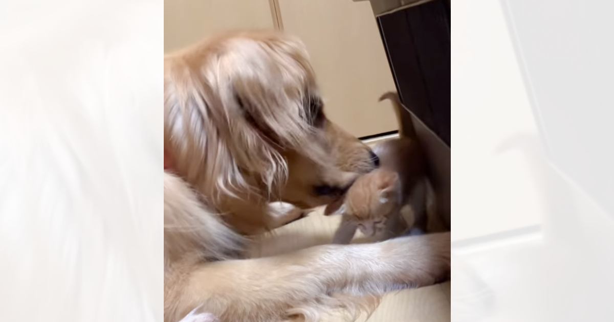 無邪気に遊ぶ子猫の姿は、見た人を思わず虜にしてしまう魅力がいっぱい。そんな子猫の姿に癒されるのは、わんちゃんも同じようで…?