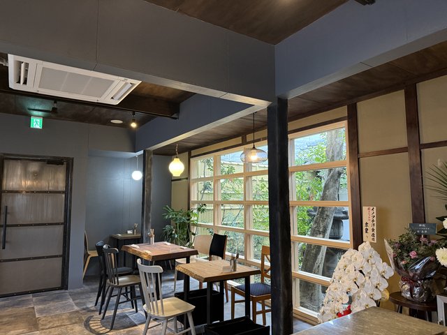 旧店舗は6席ほどのこじんまりとした店内でしたが、移転後は広々。内庭もあり、光も入って明るい空間です。新たにテーブル席も増設され、様々なシーンで使えます。