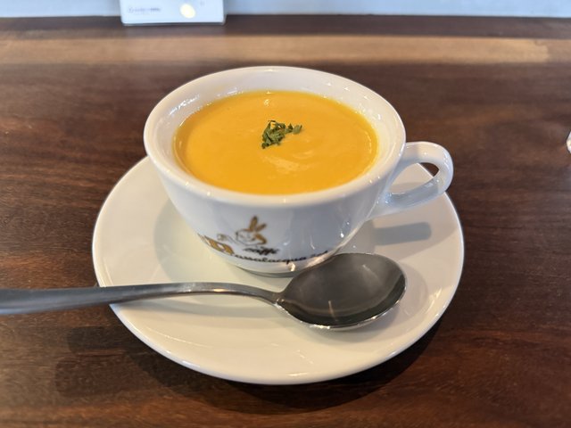 まずは、季節野菜のスープをいただきます。この日は、人参のポタージュ。もったり感のある濃厚さ、まさに飲む人参といった具合。まろやかでクリーミー、繊維の引っ掛かりもなく丁寧な仕事が光ります。