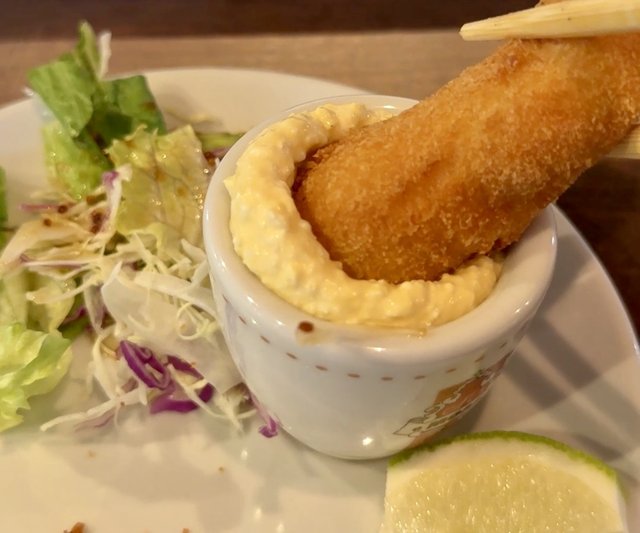 このタルタルソースも秀逸です。もはやタルタルというより、玉子サンドに挟むような玉子マヨのような仕上がりで、海老フライとの相性、一体感も抜群。たっぷりとつけてどうぞ。