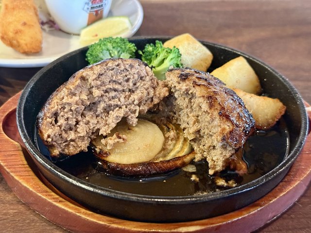 ゴツゴツとした食感ですが、決して硬いことはなく肉肉しいハンバーグ。口の中いっぱい広がる、肉の美味しさ。さすがの美味しさです。熱々で火傷しそうになります。