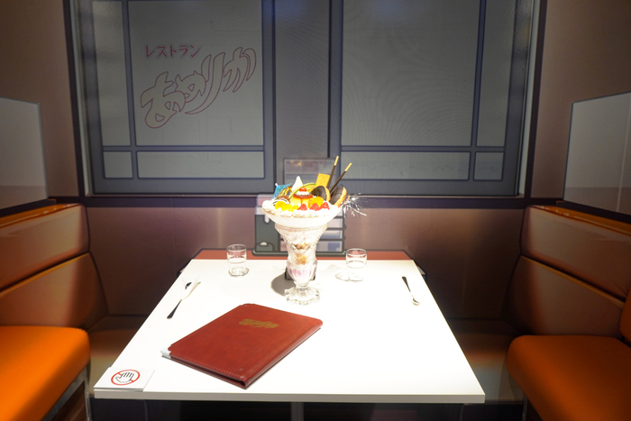 その他、光の(体の)中に手を入れて感触を確かめられる仕掛けや、花火の刺さった巨大パフェが人気のファミリーレストラン「あめりか」でフラッシュを使って撮影すると何かがあらわれるギミックなど、展示体験がより楽しくなる要素も盛りだくさん。会場には作中に登場したアイテムも散りばめられているので、是非見逃さずにチェックいただきたい。