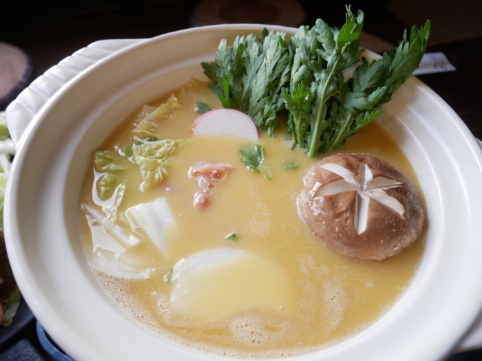 オムレツをゆっくり楽しんでいると、テーブルの鍋も完成しました。まずはスープから一口。濃厚なのに重くなく、鶏の旨みがぎゅっと凝縮されていて、口当たりは驚くほどなめらかで身体もポカポカ温まっていきます♪
