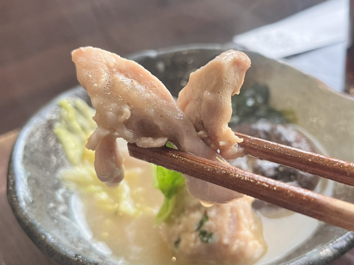 濃厚でコクのある鶏ガラスープはそのままでも十分美味しいですが、柚子胡椒やポン酢を加えると、また違った表情を見せてくれます。
