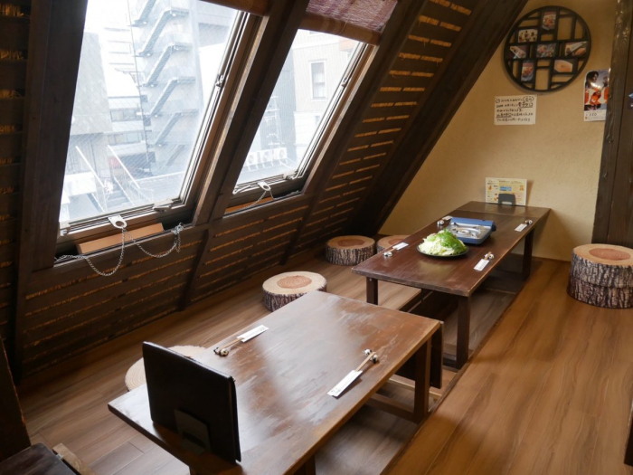 外の喧騒がすっと遠のく、木目を基調とした落ち着いた空間が広がっていました。テーブル席は掘りごたつ式で、靴を脱いでゆったりと腰を下ろせるのが嬉しいポイント。どこか“ほっとする”和の空気も漂い、冬の夜にぴったりだと感じました♪