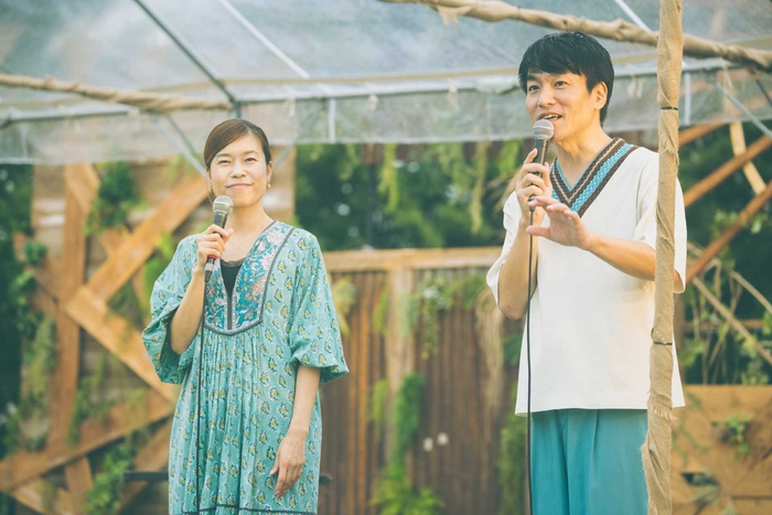 イベント開始前には、MCとしてFM802のDJ飯室大吾と内田絢子が登場。「太陽と緑とレジャーシートが広がる景色。それだけでワクワクが伝わってくる。自然や空気、音楽と一緒にリラックスしながら楽しんで」と集まった観客へ、イベントの楽しみ方を伝授。さらに、ヨガインストラクターの資格を持つ内田絢子によるモーニングヨガタイムでは、ピクニックシートをヨガマット代わりに、全身をゆったりとほぐしながら心身ともにリラックス♪