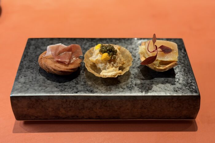 2品目はフィンガーフード。小さいながらもシェフのこだわりと素材がたっぷり詰まった3品です。