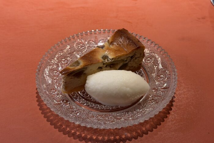 デザートは白胡麻と無花果チーズケーキと新高梨のシャーベット。