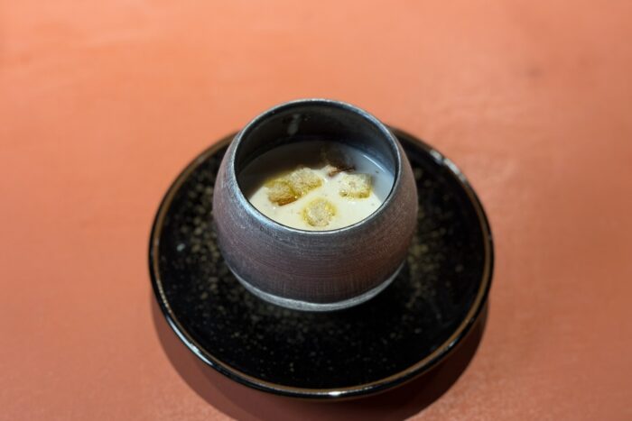 1品目は菊芋のスープ。豊かな風味に加え、ほんのり土っぽさを感じるスープ。菊芋特有のほのかな甘みも心地いい。