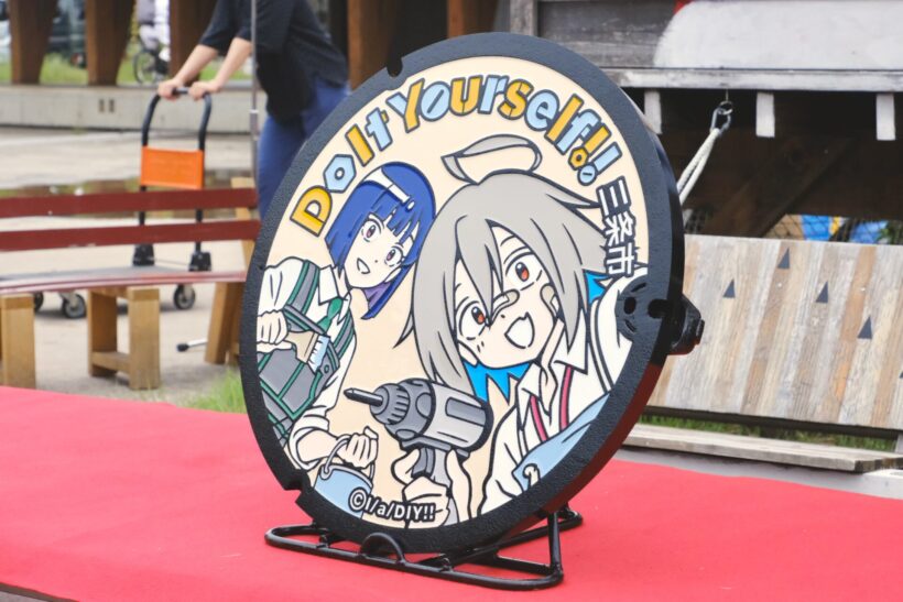 アニメ「DIY!!」の放送3周年を記念し、三条市にご当地マンホールが設置