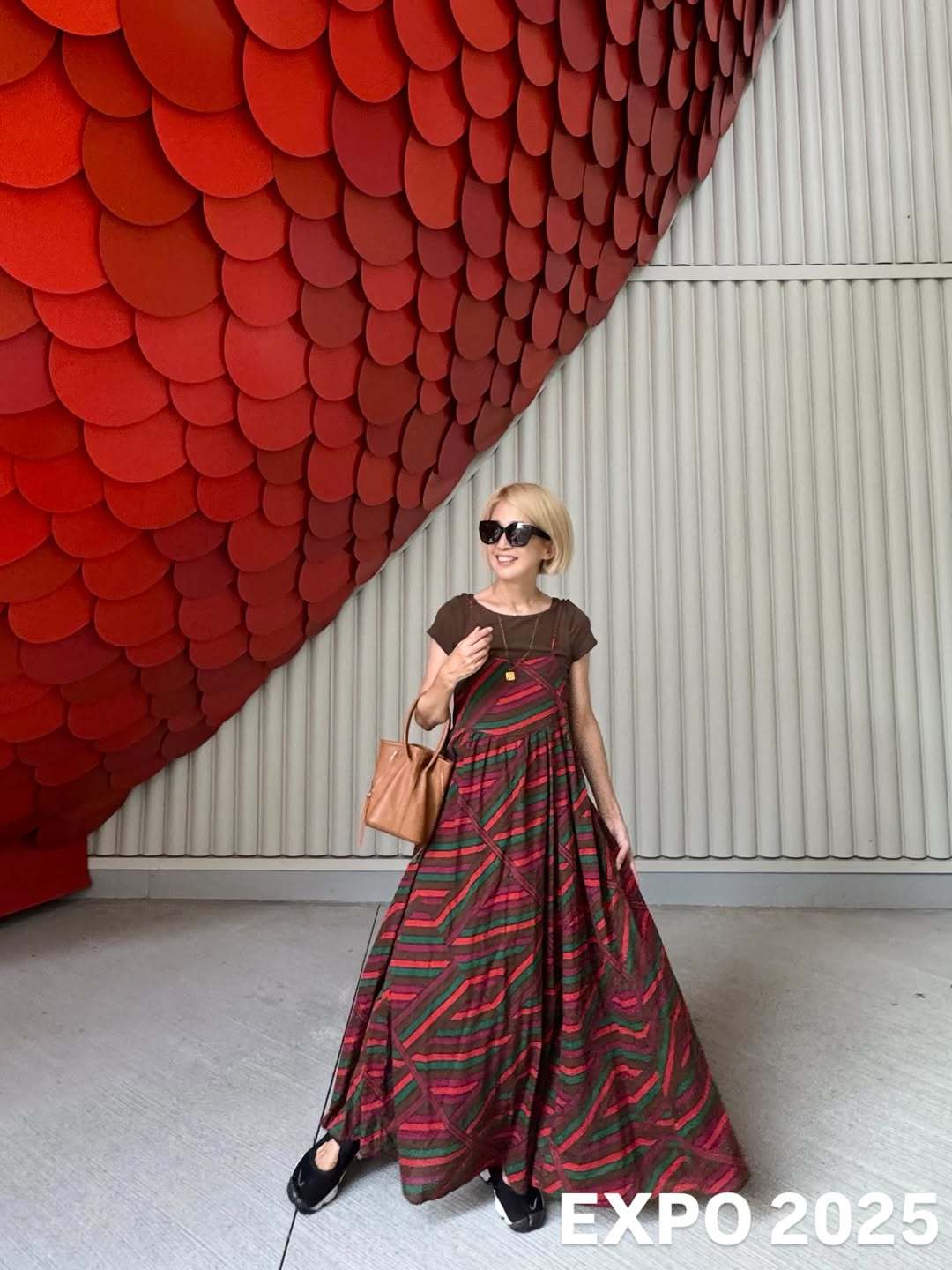 総柄やAラインのワンピースに赤が入ったアイテムは、1枚で華やかさを演出でき、着こなしがぐっと簡単になります。