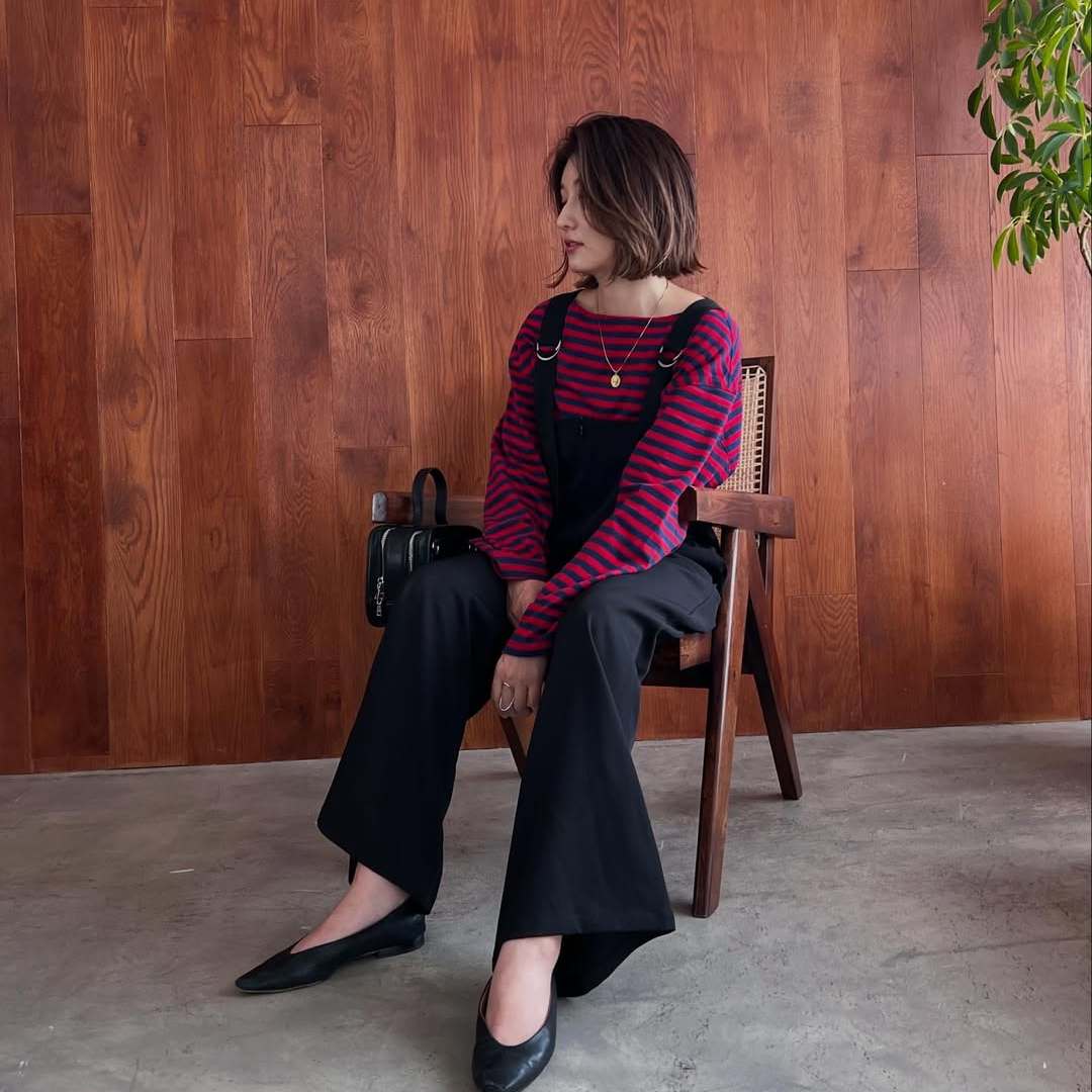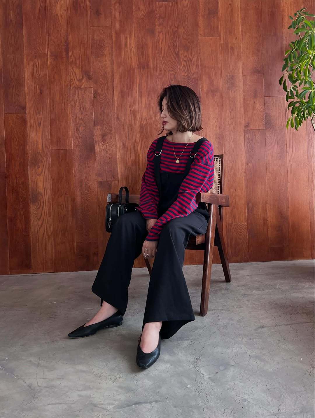 定番をアップデート!赤ボーダーでシンプルコーデを格上げ