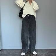 秋冬に穿きたくなる黒のデニムパンツは、インディゴブルーのデニムパンツとは違って、大人っぽく見えるアイテムです♡