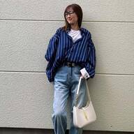 【11月編】老け見えしないデニムパンツコーデ①ビッグカラーブラウスを合わせる♡