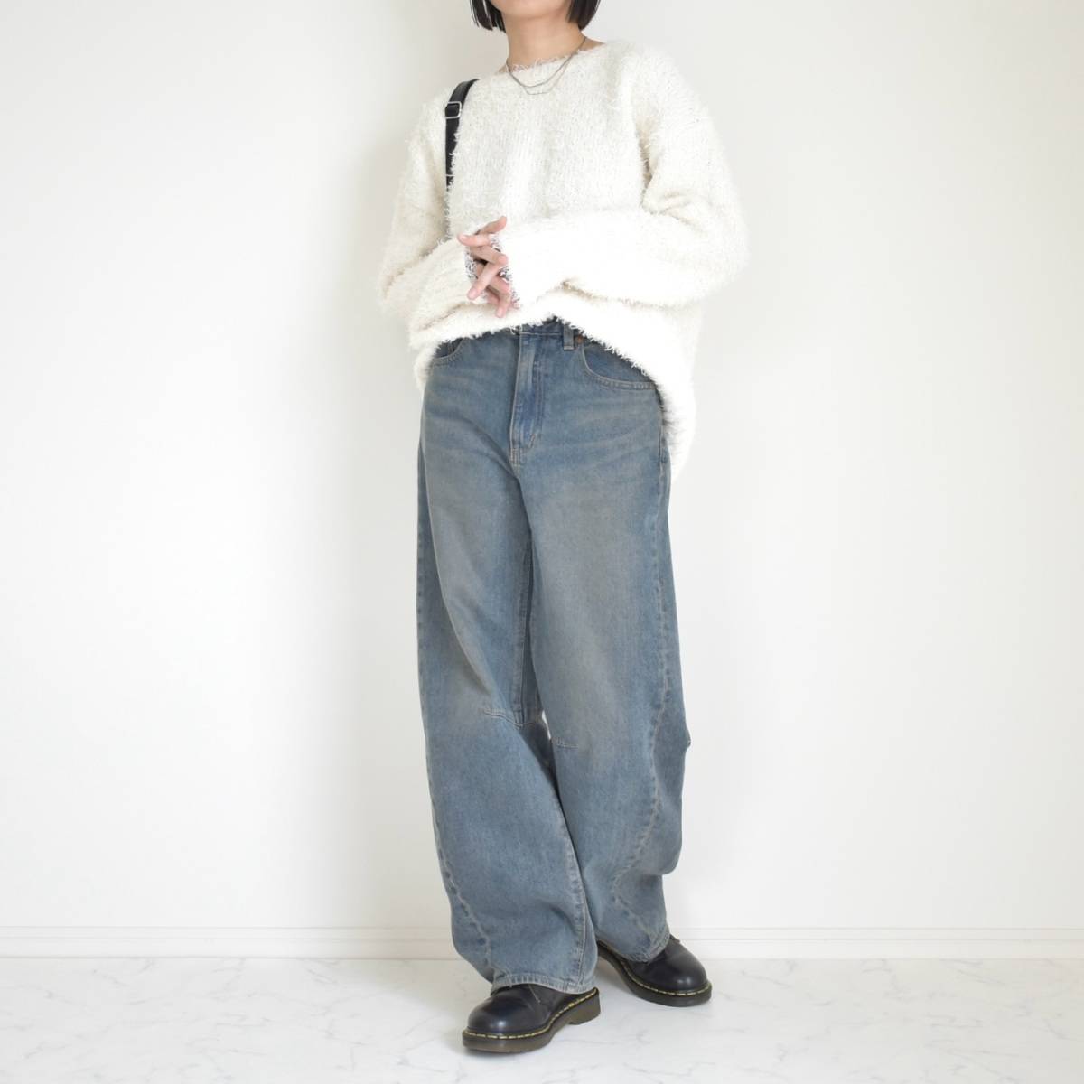 【11月編】老け見えしないデニムパンツコーデ⑤白のフェザーニット合わせが最強!