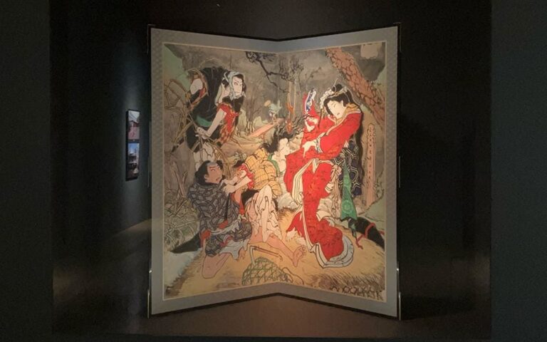 東京・六本木のサントリー美術館で11月3日まで開催中の「幕末土佐の天才絵師 絵金」は、幕末から明治初期にかけて高知で活躍した絵師・金蔵(きんぞう)、通称「絵金(えきん)」の作品を紹介する、東京の美術館では初となる大規模な展覧会です。歌舞伎や浄瑠璃をモチーフにした極彩色の芝居絵屏風をはじめ、絵馬提灯や災害記録画など、絵金の多彩な画業の全貌が明らかになります。