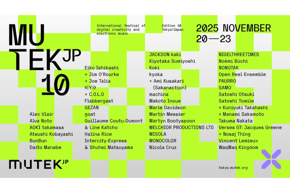 11 月 20 日(木) 〜23 日(日)に東京・渋谷のSpotify O-EAST、WWW、MIYASHITA PARK「or」、渋谷ヒカリエ ホールB、渋谷スクランブル交差点で開催される電子音楽とデジタルクリエイティビティの祭典「MUTEK.JP 2025」のタイムテーブルが発表された。