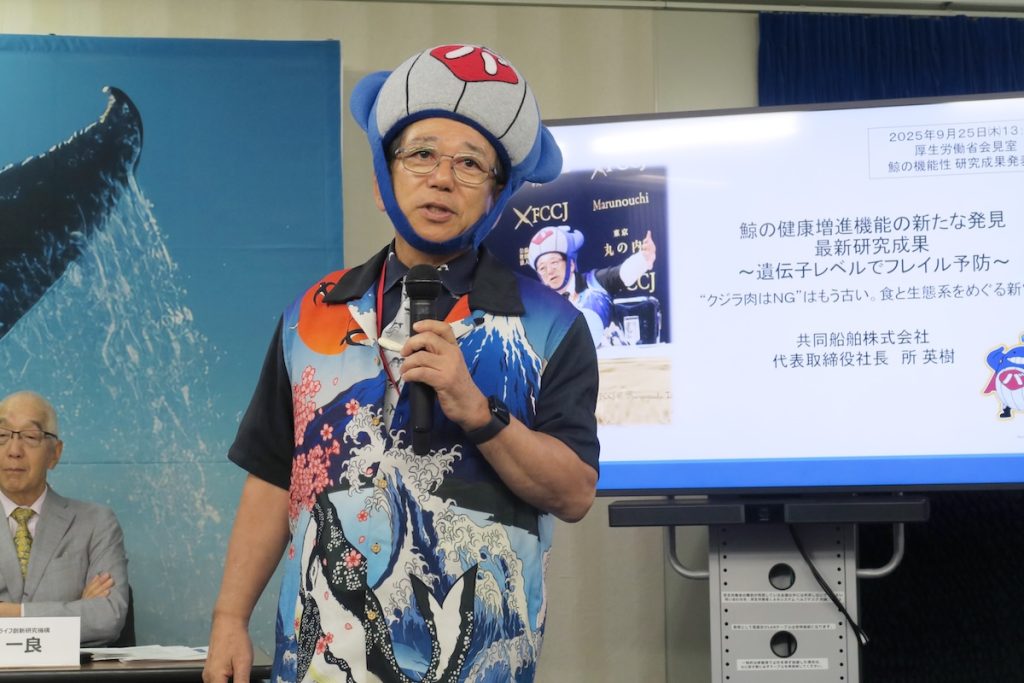 2025年9月25日、厚生労働省で日本捕鯨協会による記者会見が開かれた。会場には30人以上のプレス関係者が集まり、理事や研究者ら登壇者が「クジラ肉の栄養効果と今後の可能性」について語った。