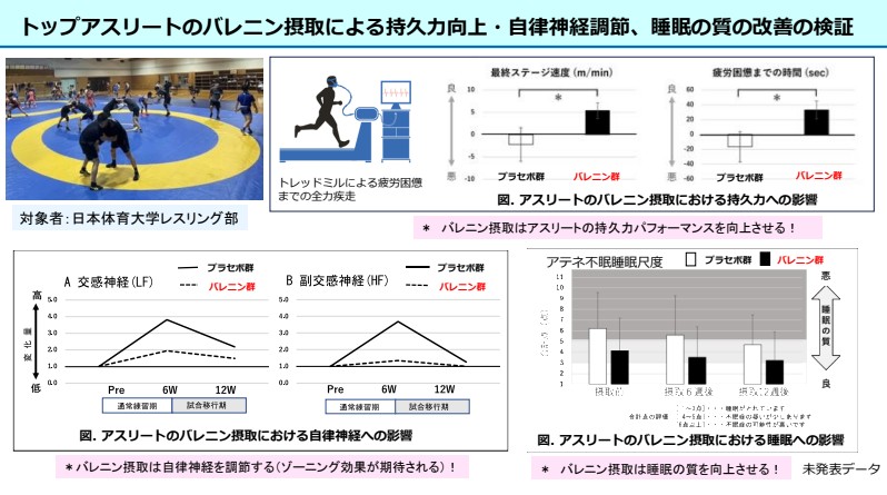 実際に日体大レスリング部の学生を対象にした研究では、バレニンを摂取した選手は持久力が高まり、自律神経の乱れも抑えられた。さらに睡眠の質も改善。アスリートだけでなく、集中力低下や疲労を抱える人、高齢者にとっても大きな効果が期待できる。