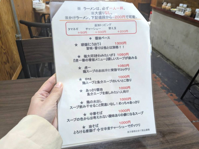 筆者はお客さんのほとんどが注文するという醤油ラーメンの「極大河」を注文しました。