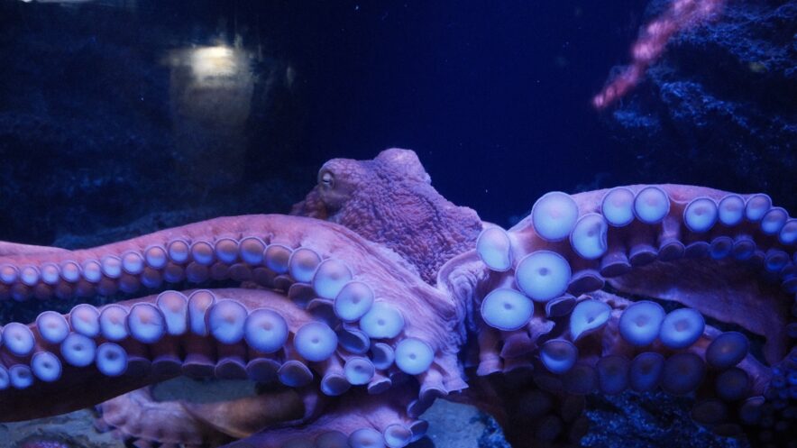 世界最大のタコと言われるミズダコ。体や腕をくねらせて水槽を動き回っているのを見ると、かなり迫力があります。