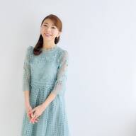 品よく広がるネイビーのスカートに、シルク素材のブルーの身頃のカラーリングが可愛い!