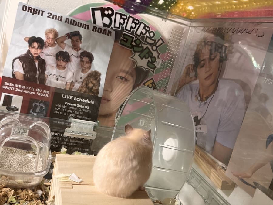 韓国語で「どんぐり」という意味があるそうで、確かに木の実のようなころっとしたボディがかわいいハムちゃんです。日々飼い主さんの推しの写真を見せて英才教育をしているため、イケメン好きなのだとか。